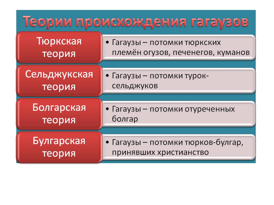 О происхождении гагаузов существует около 20 различных гипотез. Самые обоснованные из них: